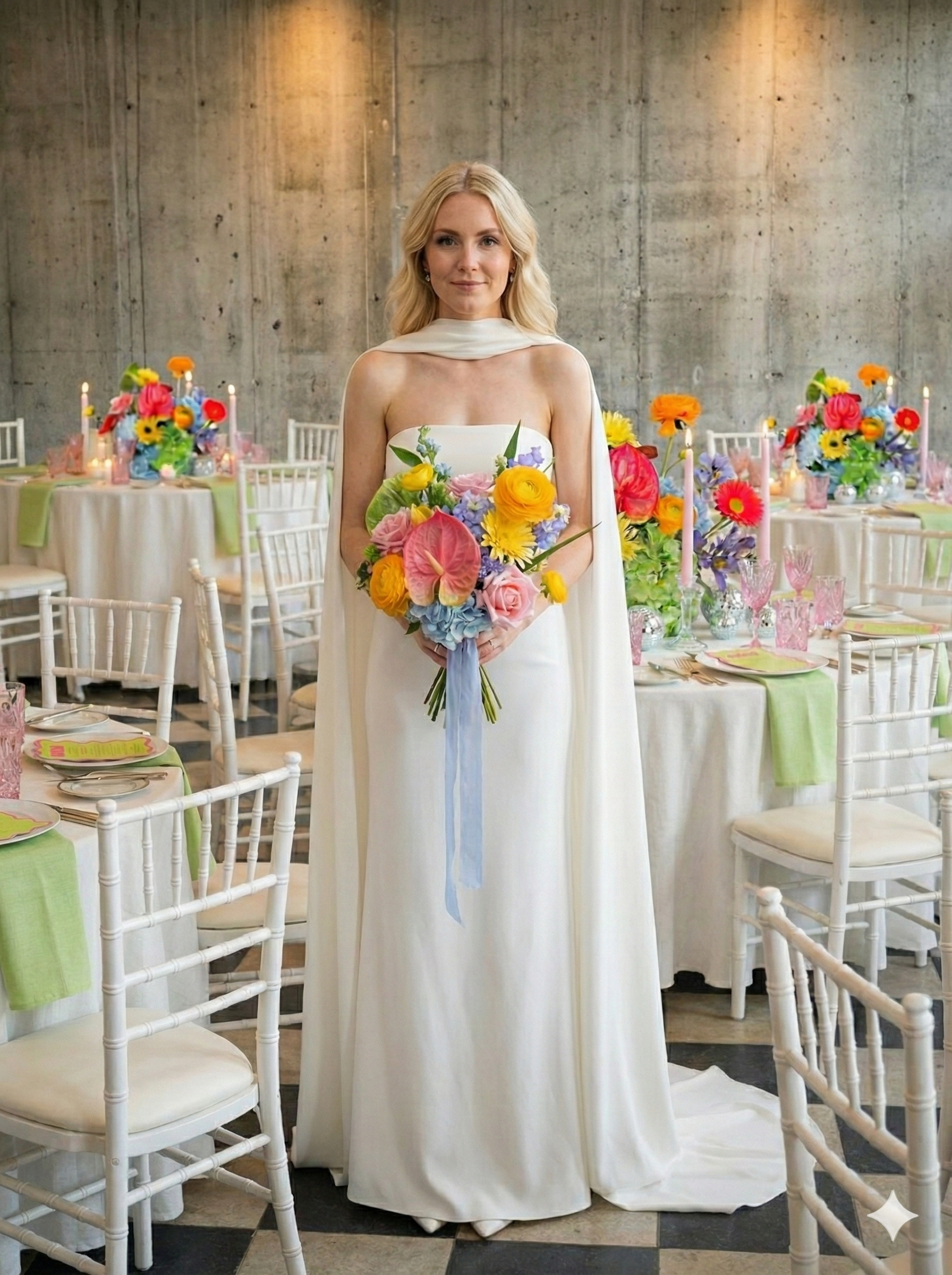 Ideel til både chic bybryllupper og livlige sommerfester, hvor der ønskes et farverigt og moderne look – helt uden behov for ekstra pynt.