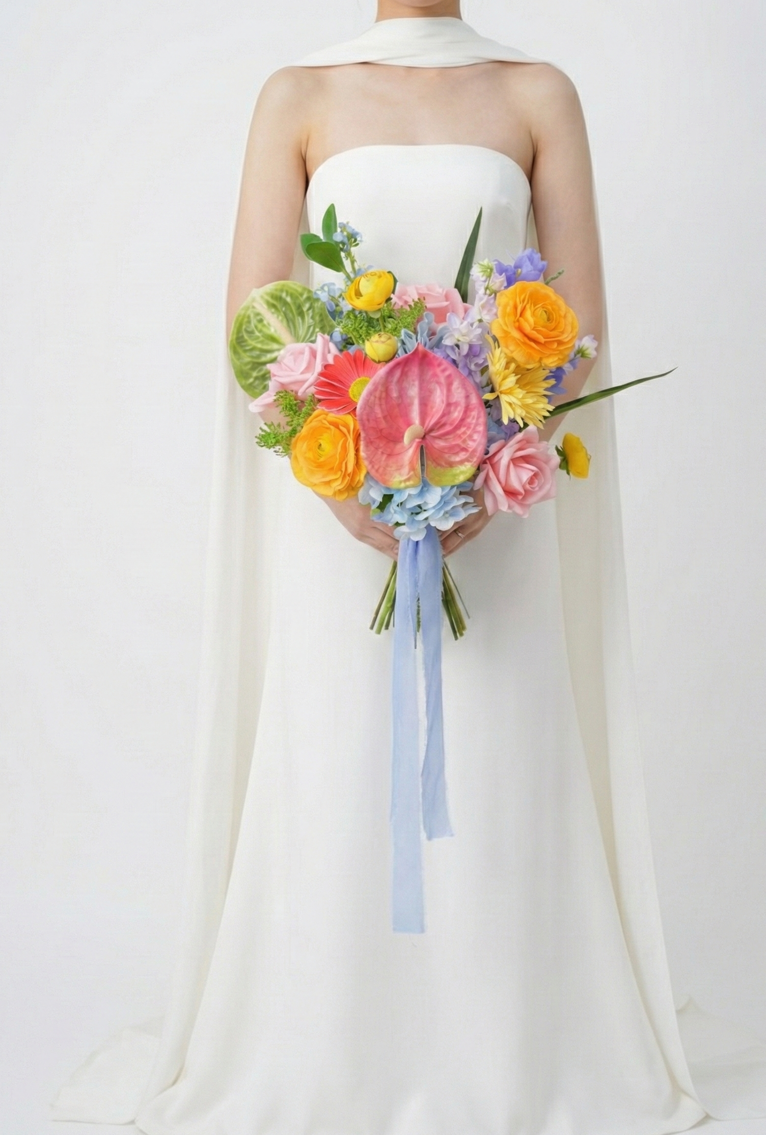 Perfekt til bruden, der vil have et bryllupslook, som føles levende, farverigt og selvsikkert.