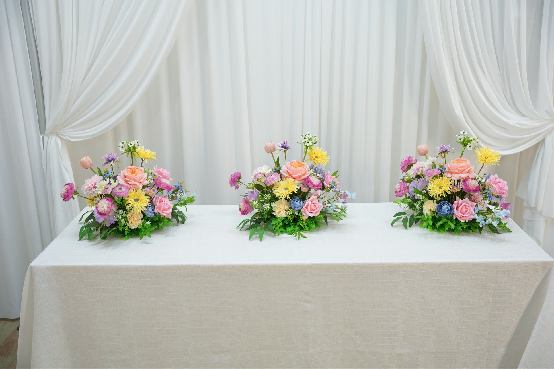 Tilføj et strejf af farve og en smule vildblomstmagien til jeres venue med Wild Love Borddekorationen. Arrangementet er skabt til at se frodigt, naturligt og levende ud – ideelt til middagsborde, ceremonien, velkomstområdet, baren eller gavebordet.